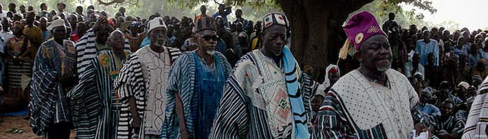 The Gonjas belong to the larger Guan ethnic group (also known as ‘Kwa’), with the oldest written historical records. Also called ‘Ghanjawiyyu’ and ‘Ngbanye’ (the latter means ‘Brave Men’), the Gonjas derived their name from a corrupted Hausa phrase, ‘Kada Goro-Jaa’ (meaning land of Red Cola).