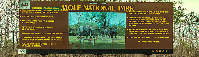 • Firearms are strictly prohibited in Mole National Park. Declare (and surrender to Park authorities) any firearm in your possession at the Park entrance, for safe keeping.